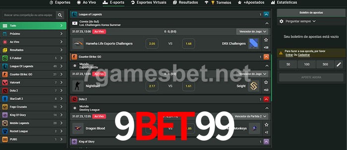 A aposta 9Bet99 oferece aos jogadores a experiência mais conveniente de apostas em eSports!